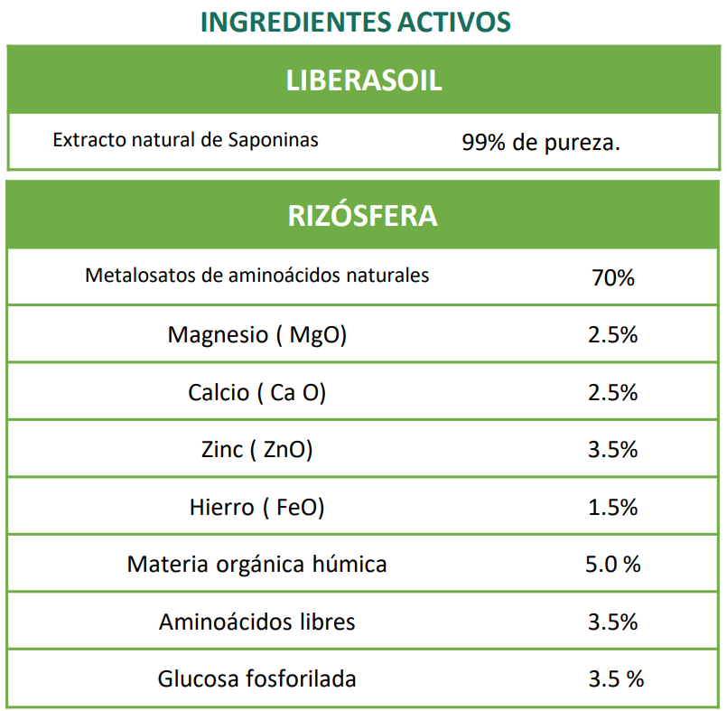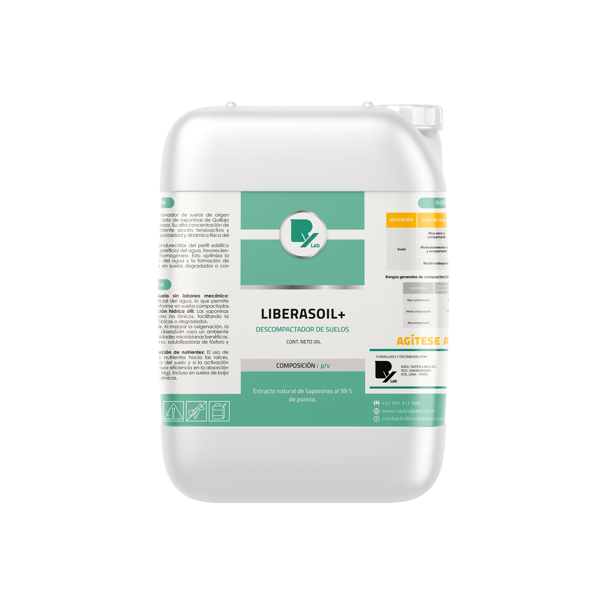 LiberaSoil+ es un innovador acondicionador de suelos de origen natural, formulado con extracto purificado de saponinas de Quillaja saponaria estandarizado al 99 % de pureza. Su alta concentración de principios activos le confiere una potente acción tensioactiva y bioestructurante, ideal para mejorar la porosidad y dinámica física del suelo.
