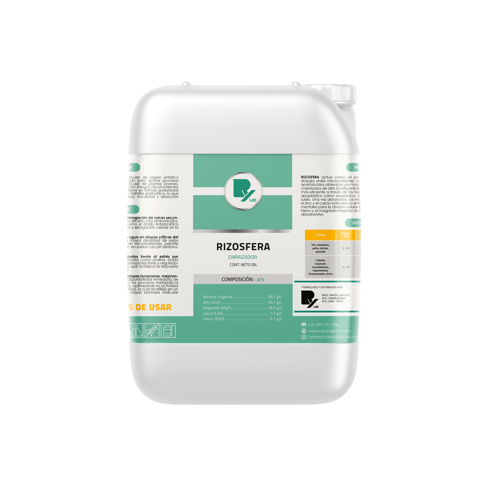RIZÓSFERA, es un bioestimulante líquido enraizador, especialmente creado para promover y estimular el desarrollo radicular para un mejor crecimiento de plántulas, trasplantes, estacas ya enraizadas y árboles frutales. Su formulación está perfectamente balanceada y todos los nutrientes se encuentran quelatados con aminoácidos, en forma asimilable, lográndose un mejor brote en las raíces y un crecimiento más rápido y vigoroso de las plántulas.